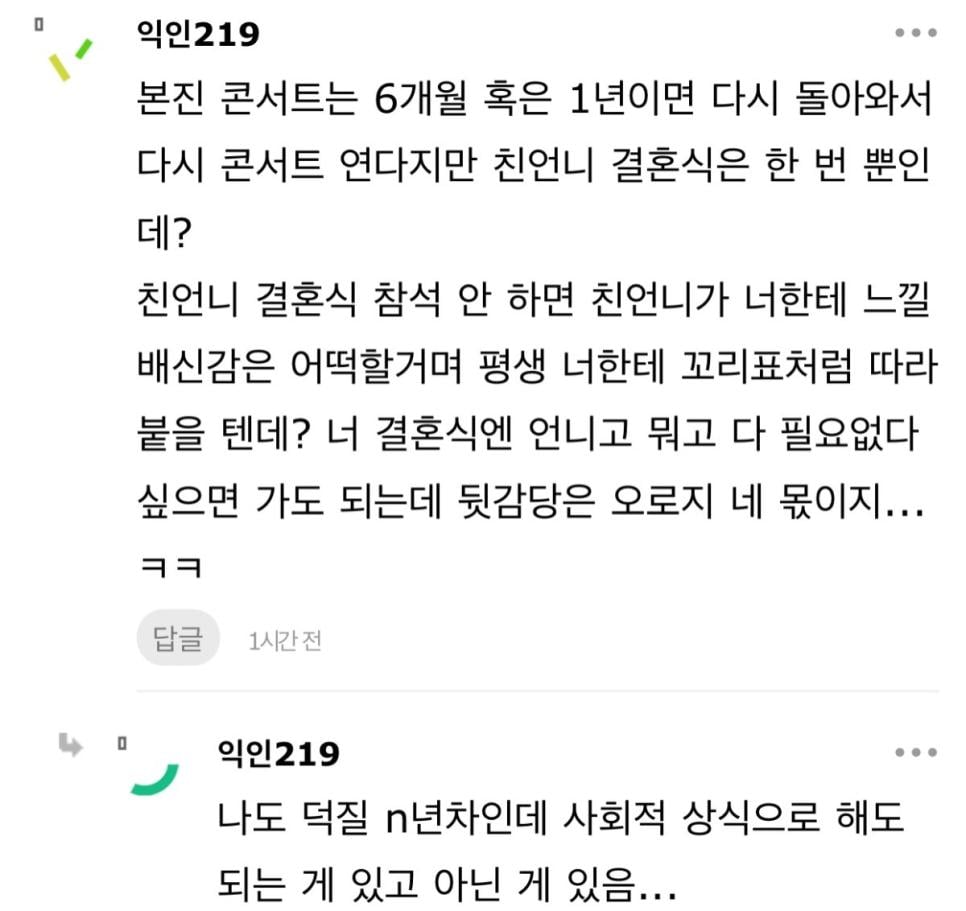 아이돌 콘서트때문에 친언니 결혼식에 안가는거 에바야?.jpg