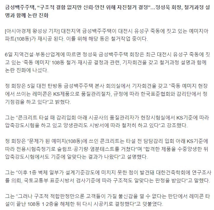 입주민들의 불신감을 덜 수 없다는 판단에 철거 후 재시공 결정