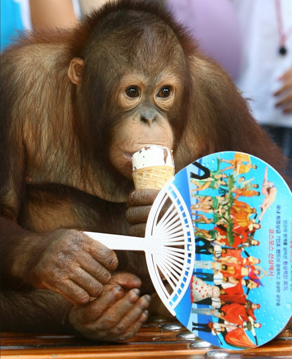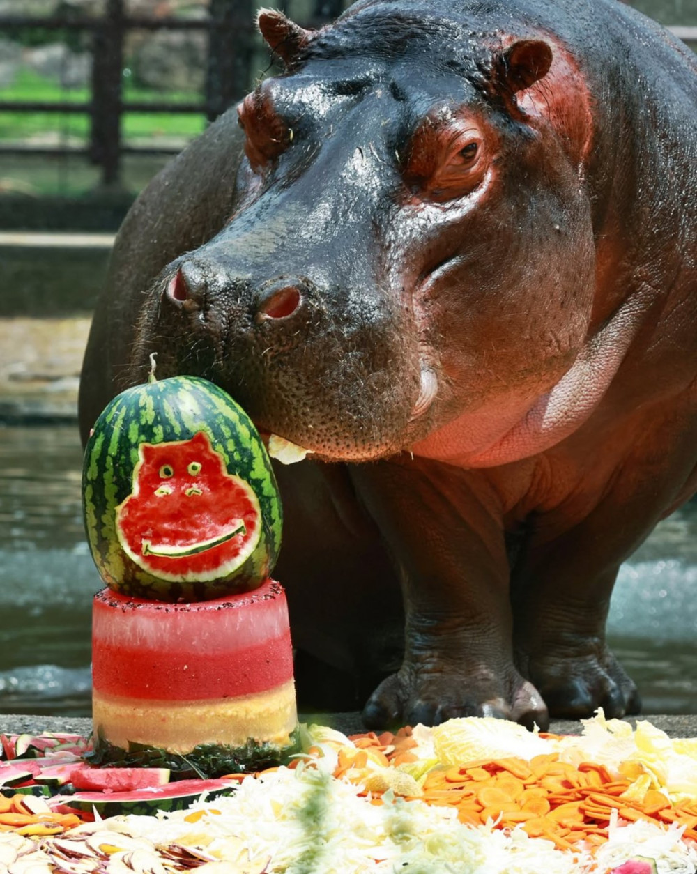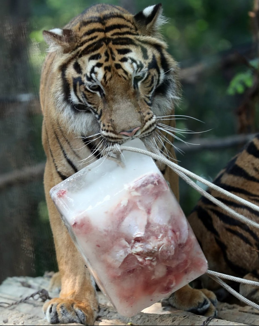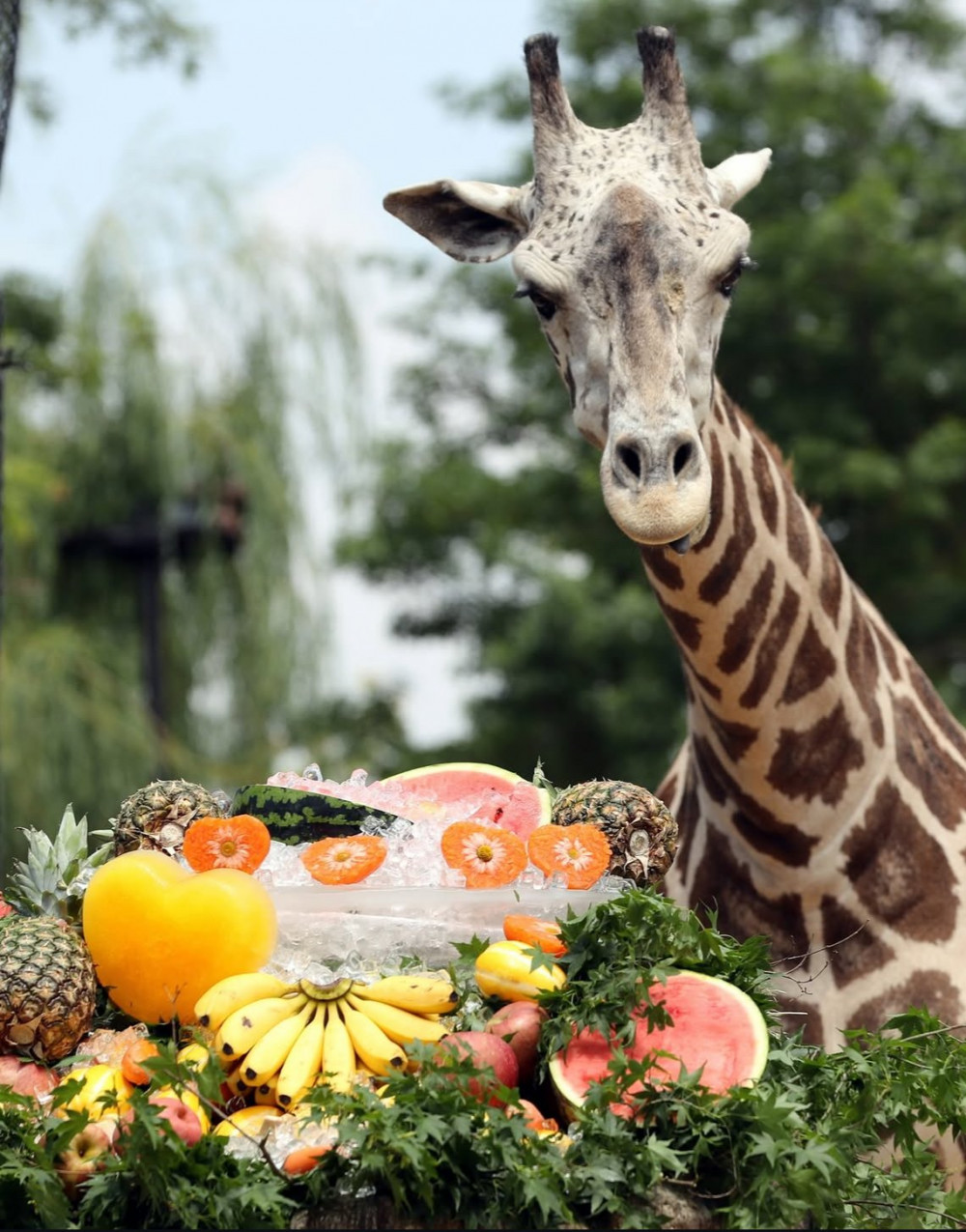 폭염에 특식으로 더위를 식히는 중인 동물원 친구들