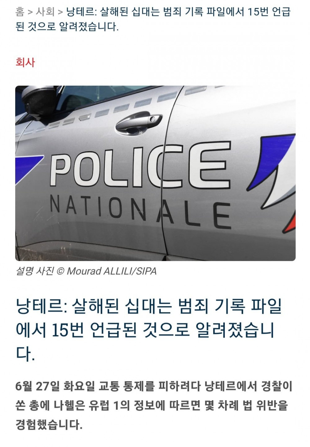 별개로 사망자 나헬은 이전에도 여러번 경찰에 체포된적도 있고 마약사건에도 연류 된적 있다고 함