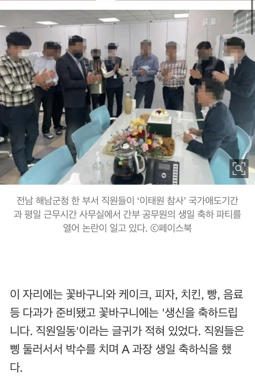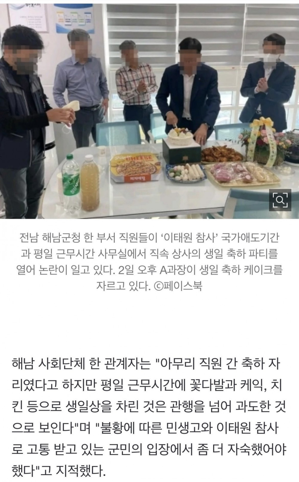 해남군청 생일파티 물의
