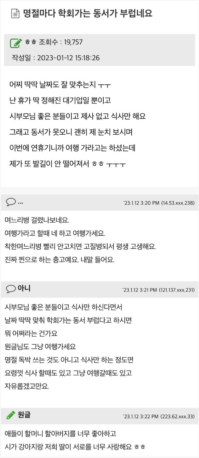 명절마다 학회 간다는 동서