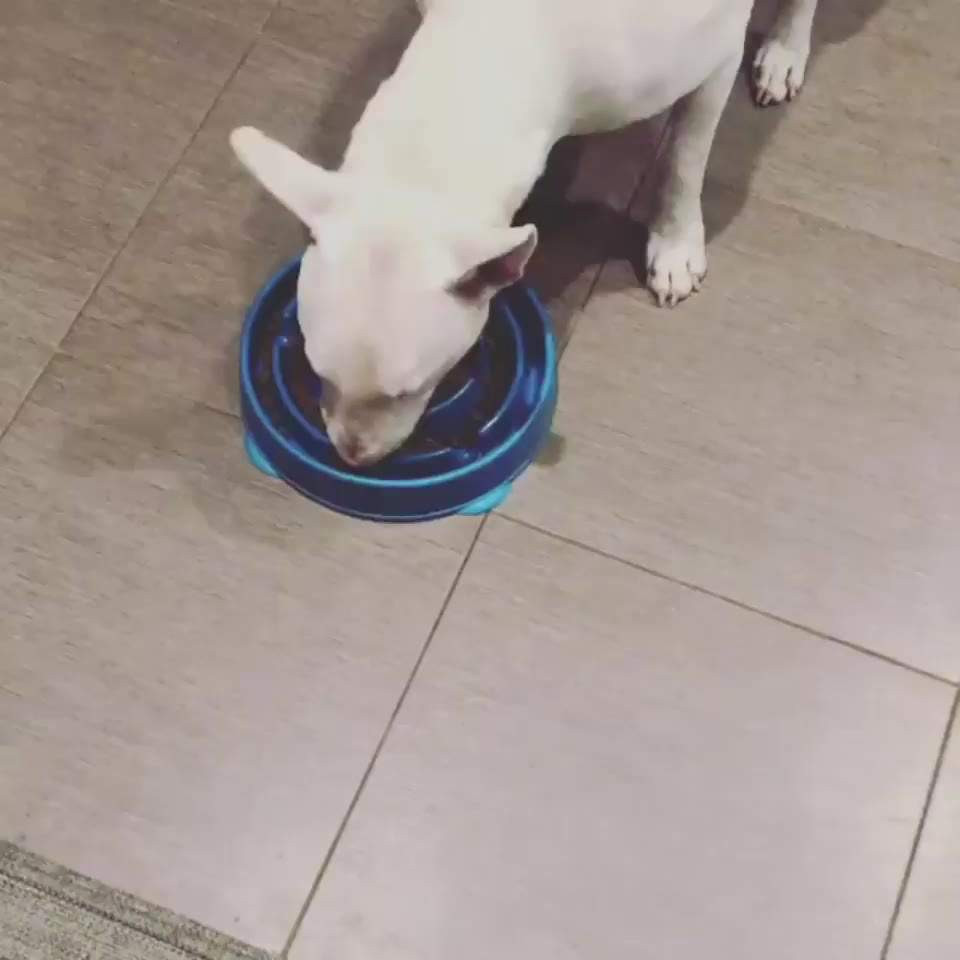 강아지가 밥을 천천히 먹으라고 개발한 개밥통 . GIF
