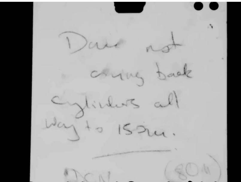 원래라면 50미터에서 감압을 했어야 했지만, 수심계는 34미터를 가리키고 있었음
