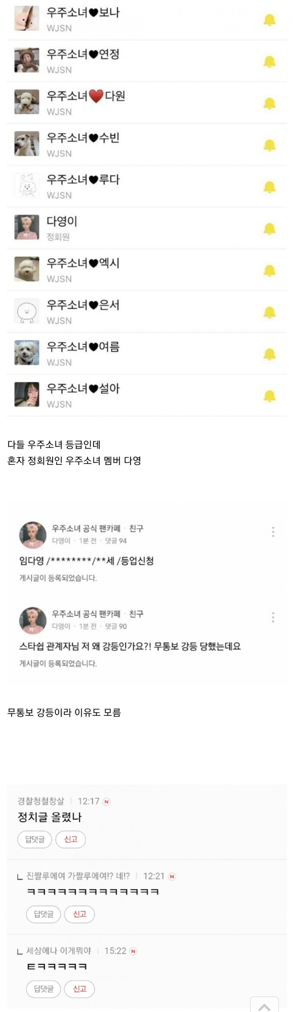 우주소녀 공식 카페에서 혼자 강등 당한 우주소녀 멤버