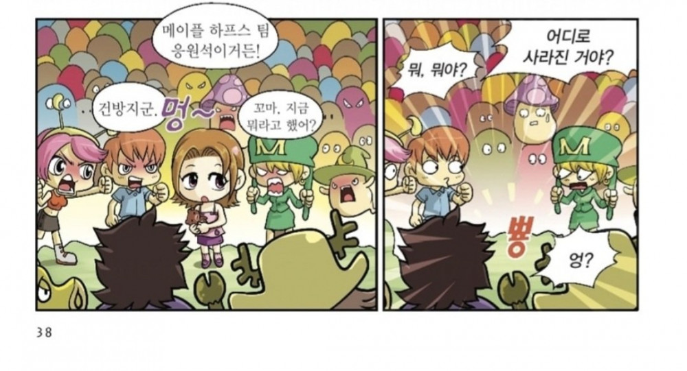 야구 만화 <메이플 홈런왕>에서 상대팀 응원석에 앉아 상대팀 선수를 조롱하는 장면이 나오는데...