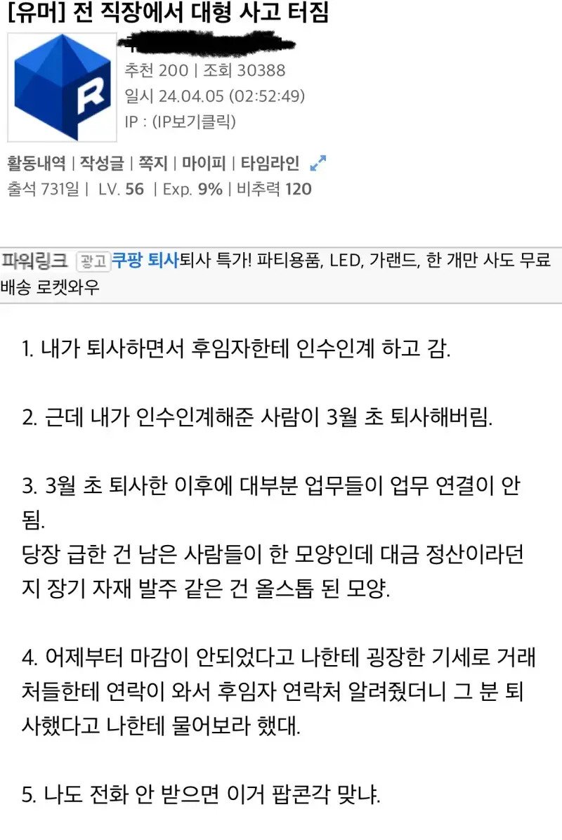 전 직장에서 대형사고 터짐