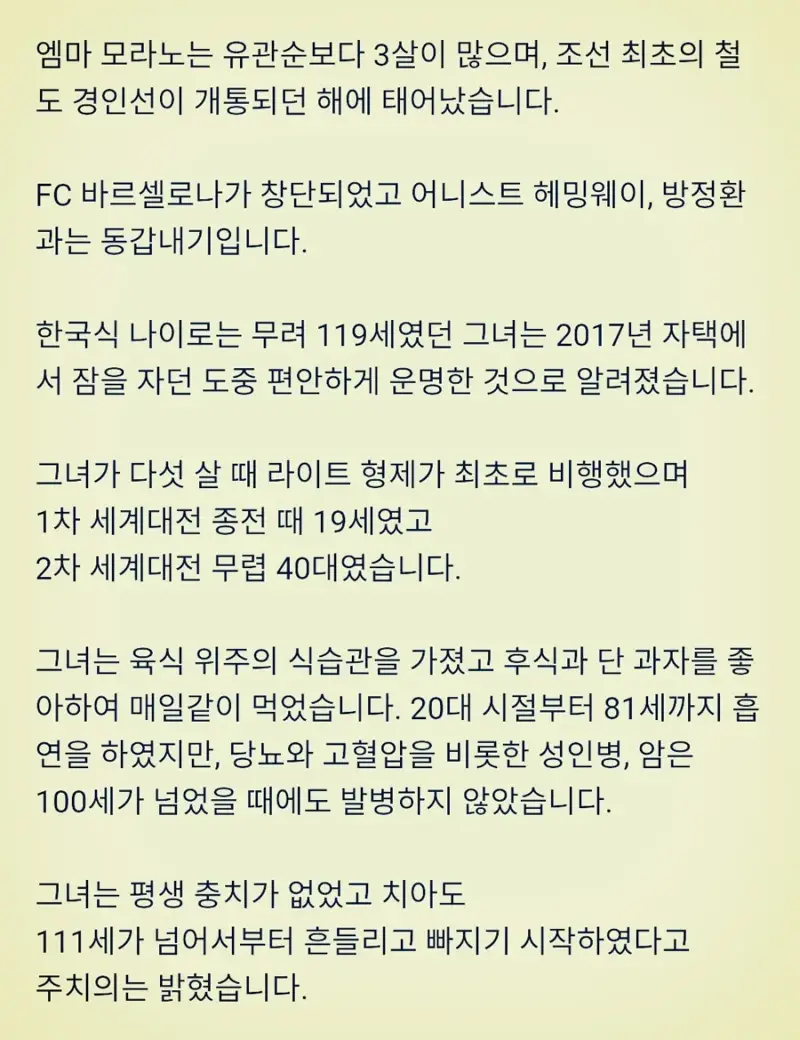 117살에 사망한 할머니의 장수 비결