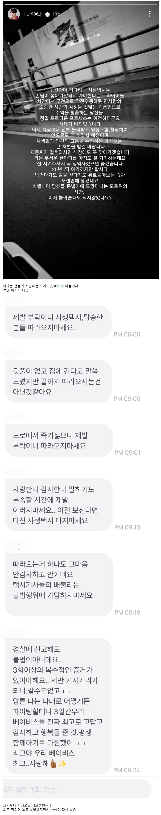 사생택시들이 집 앞까지 와서 개빡친 김재중