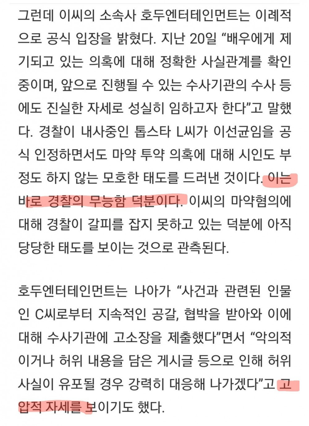 마약에 대한 물증도 못잡았다함